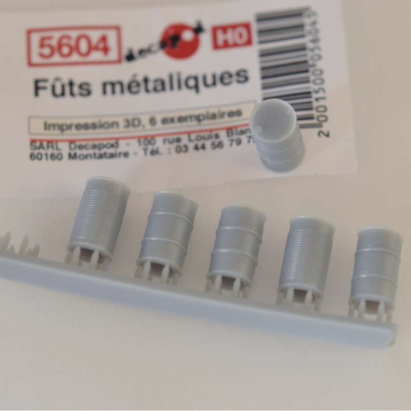 Decapod vous propose une reproduction de trois types de fûts métalliques de 220 litres à l'échelle HO.