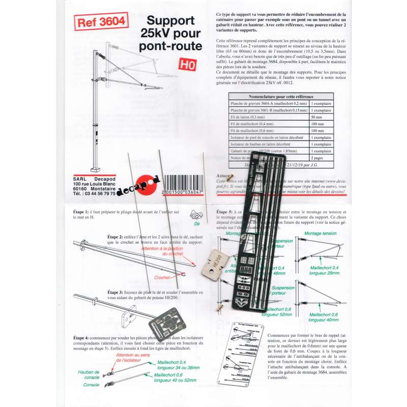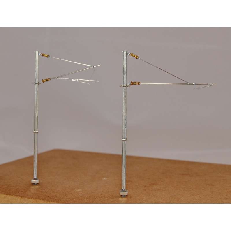 Conseil décoration : supports caténaires avec leur armement à peindre en gris antirouille claire ou foncé (8216 ou 8217 en acrylique à solvant ou bien 8718 ou 8719 en acrylique à l'eau) ; dés de protection au pied des supports en ciment neuf ou ancien (8205 ou 8206 en AS, 8708 ou 8709 en AE) ; isolateurs en marron brillant 8726. Retrouvez ces conseils dans la notice de montage.