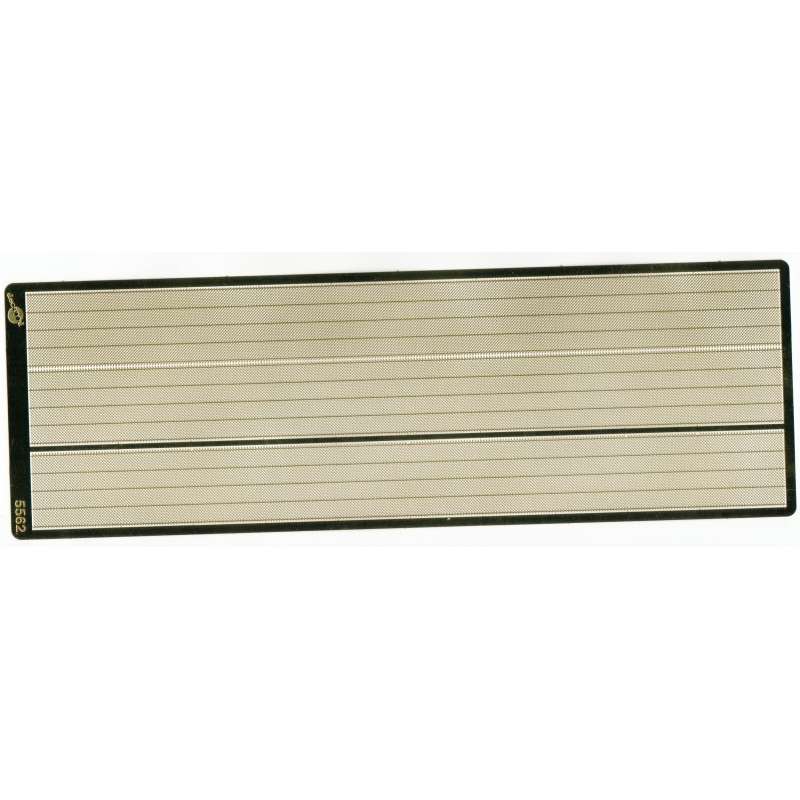 Notre réalisation version 2016 est en laiton de 0,15 mm d'épaisseur et se présente sous un nouveau format de 3 longueurs de 232 mm. Profilés laiton en T de 1x1 mm fournis pour les piquets, à coller (cyano) ou à souder.