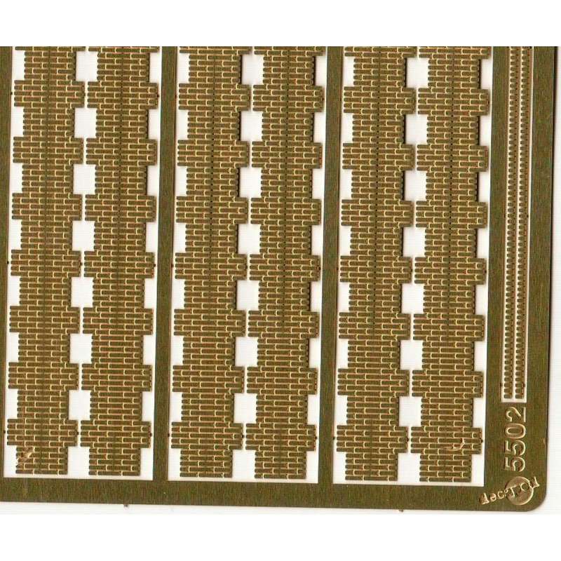 Nous avons réalisé ces références en laiton photogravé de 0,25 mm car cela reste à nos yeux le meilleur moyen d'obtenir un résultat propre et bien plus facile à découper et décorer qu'on ne le supposerait ; le laiton de 0,25 mm se découpe facilement à l’aide d’un cutter ou aux ciseaux, en s’aidant des joints gravés pour se guider. Il suffit ensuite de s’en servir pour habiller une structure en plastique ou en carton de conception personnelle, voire un kit de bâtiment que l’on souhaiterait modifier.
