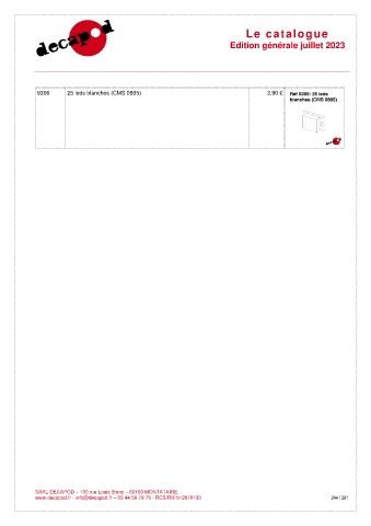 Le catalogue Edition générale juillet 2023 9306 25 leds blanches (CMS 0805) 3,90 € SARL DECAPOD – 100 rue Louis Blanc – 60160 MONTATAIRE www.decapod.fr - info@decapod.fr – 03 44 56 79 75 - RCS/RM 512870130 244 / 281